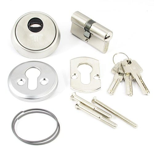 Comes with T60 Europrofile Cylinder with 5 keys and a security escutcheon cylinder protector